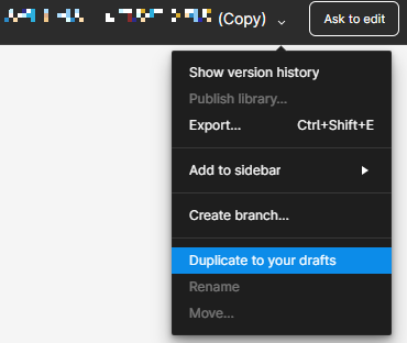현재 피그마 상태입니다. 복사를 했음에도 Ask to edit 이 뜨고 , 수정은 불가능합니다.