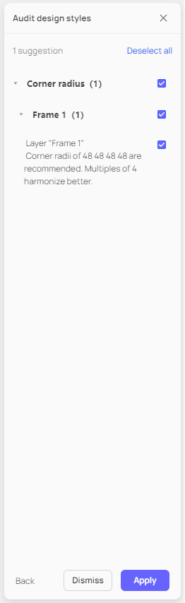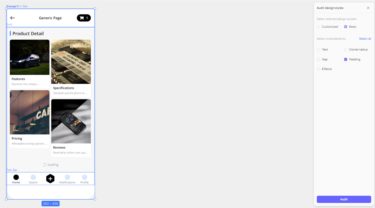 Audit: 이 기능은 스타일 가이드 및 디자인 표준 준수 여부를 자동으로 확인하여 디자인 전반의 일관성과 품질을 보장하는 데 도움이 됩니다.