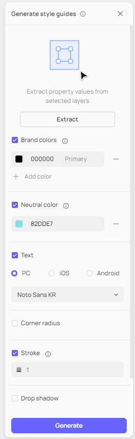 이렇게 디자인 규칙을 한번에 생성할 수 있다. 이것만으로도 creatie 의 가치는 충분하다고 생각한다.
