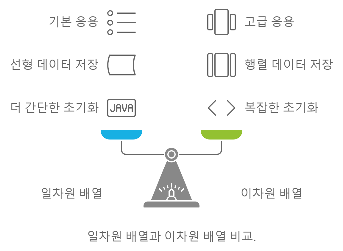 배열은 다양한 형태로 존재할 수 있지만, 가장 기본적인 형태는 1차원 배열입니다.