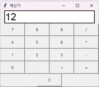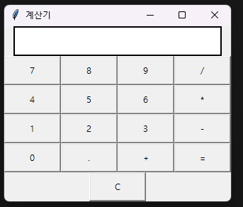 코드를 작성한 후에 프로그램을 실행하면 간단한 계산기 창이 나타납니다.