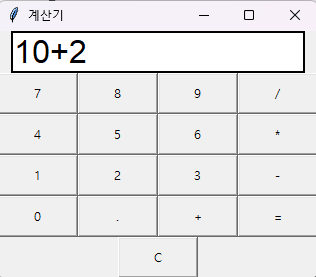 - 버튼 생성 및 배치: 숫자 버튼과 연산 버튼을 반복문을 통해 생성하고, grid 메서드를 사용하여 창에 배치합니다.