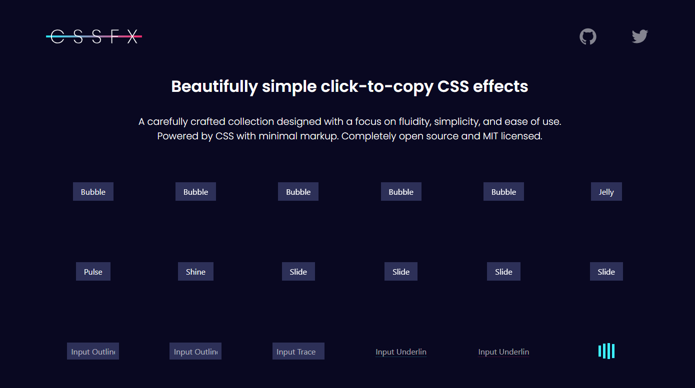 CSSFX - Beautifully simple click-to-copy CSS effects