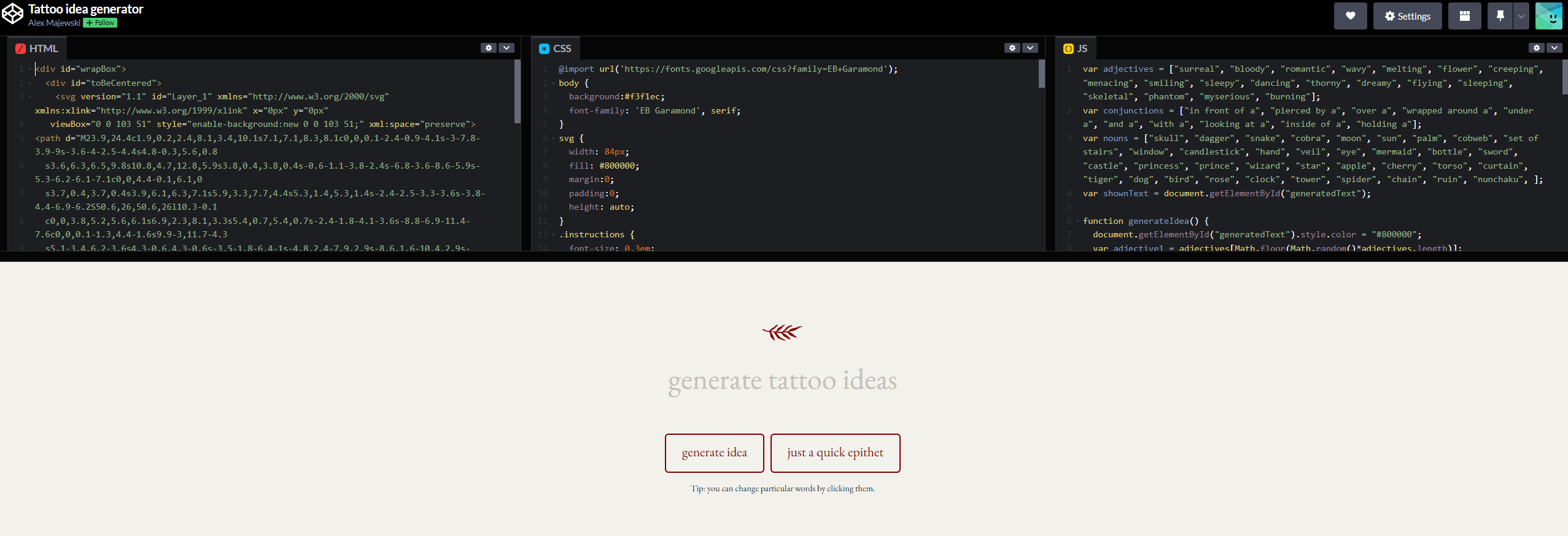 HTML , CSS , JAVASCRIPT 이렇게 3가지 라이브 코드가 뜨고 여기서 수정해서 소스를 가져올 수 있습니다.