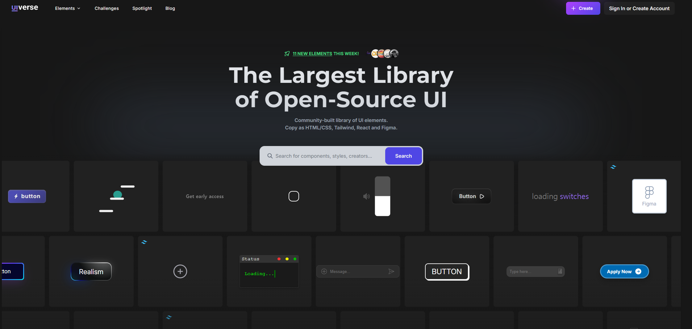 Community-made library of free and customizable UI elements made with CSS or Tailwind. It's all free to copy and use in your projects. Uiverse can save you many hours spent on building & customizing UI components for your next project.