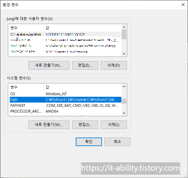 - 시스템 변수 -> Path 를 누르고 편집을 눌러줍니다.