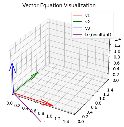 벡터 \( b \)가 벡터 \( v_1, v_2, \ldots, v_n \)의 선형 결합으로 표현될 수 있을 때 방정식의 해가 존재합니다.