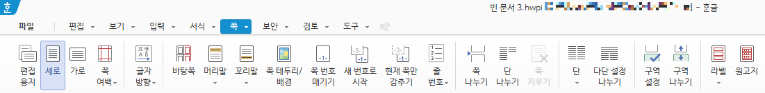 | 편집 용지 | F7 | 쪽-편집 용지 |