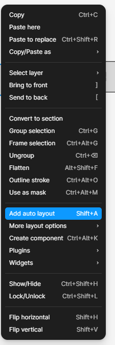 아까 처럼, 쉬프트 + A 또는 마우스 우클릭 후 Add Auto Layout 을 누릅니다