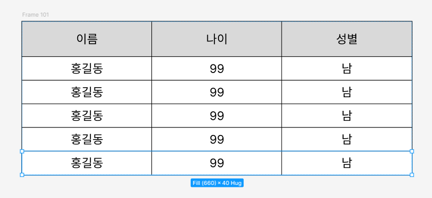피그마 작업중 테이블 UI 가 필요하게 되었습니다.