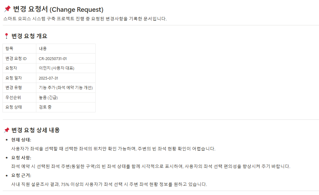 - 변경 요청 문서(Change Request Form)