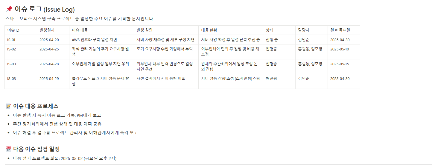 - 이슈 관리 문서(Issue Log)