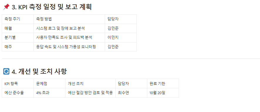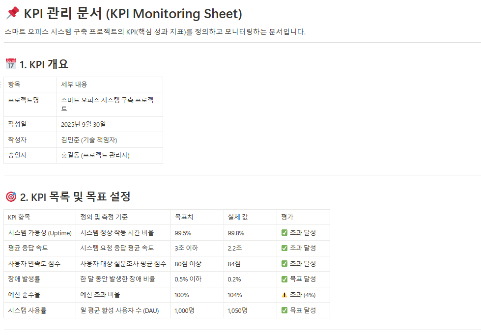 - KPI 관리 문서(KPI Monitoring Sheet)