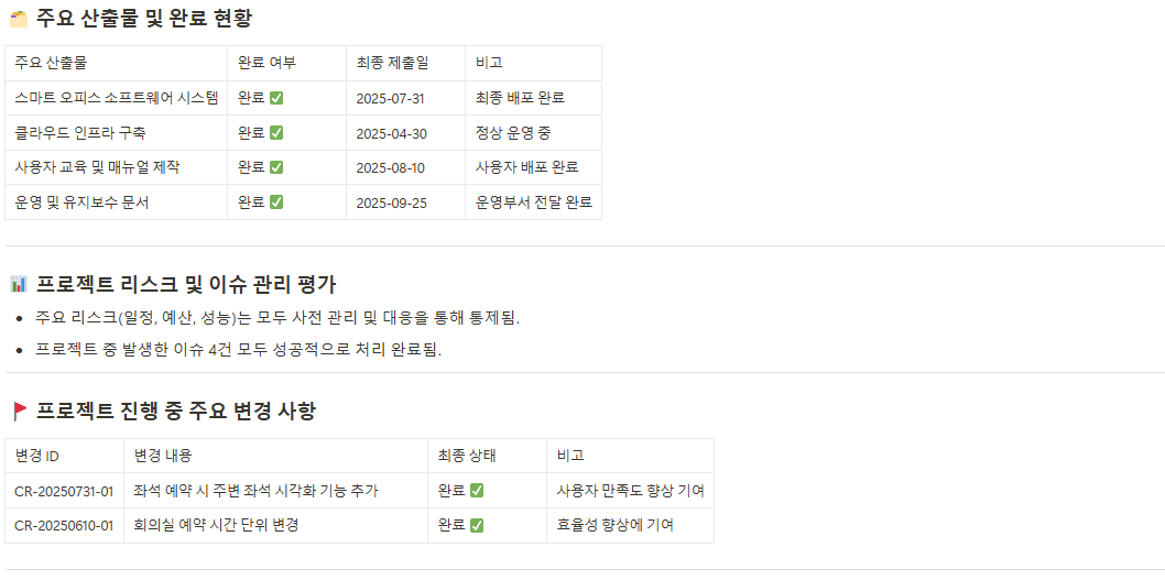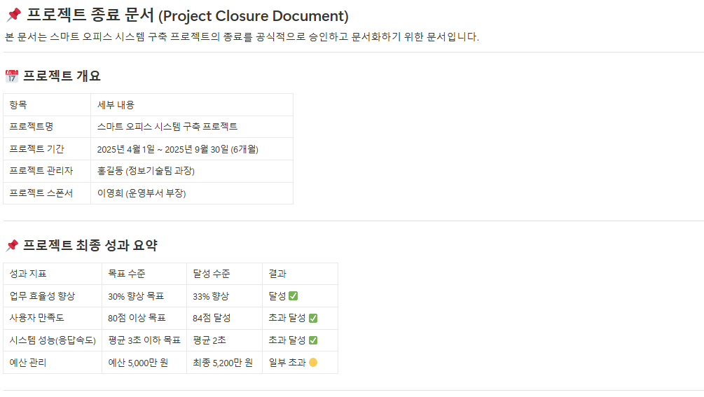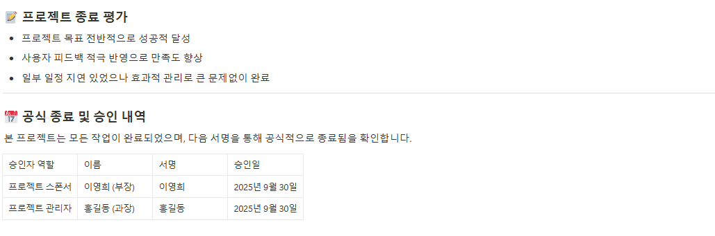 - 프로젝트 완료 보고서(Project Closure Report)