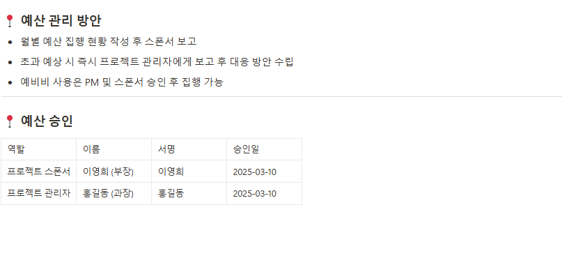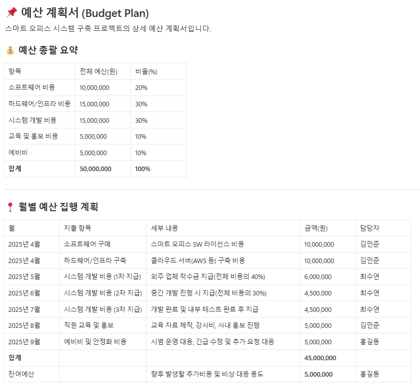 - 프로젝트 예산서(Budget Plan)
