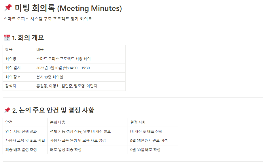 - 미팅 회의록(Meeting Minutes)