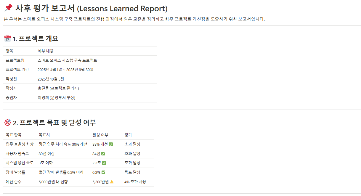 - 사후 평가 보고서(Lessons Learned Report)