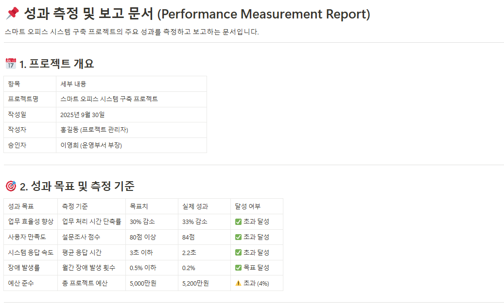 - 성과 측정 및 보고 문서(Performance Measurement Report)