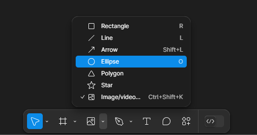 1) 하단 패널에서 Ellipse 선택 해 도형 만들기