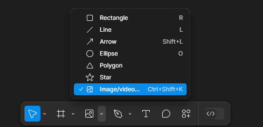 1) 하단에서 Image/video ... 선택 ( 단축키 : Ctrl + Shift + K )