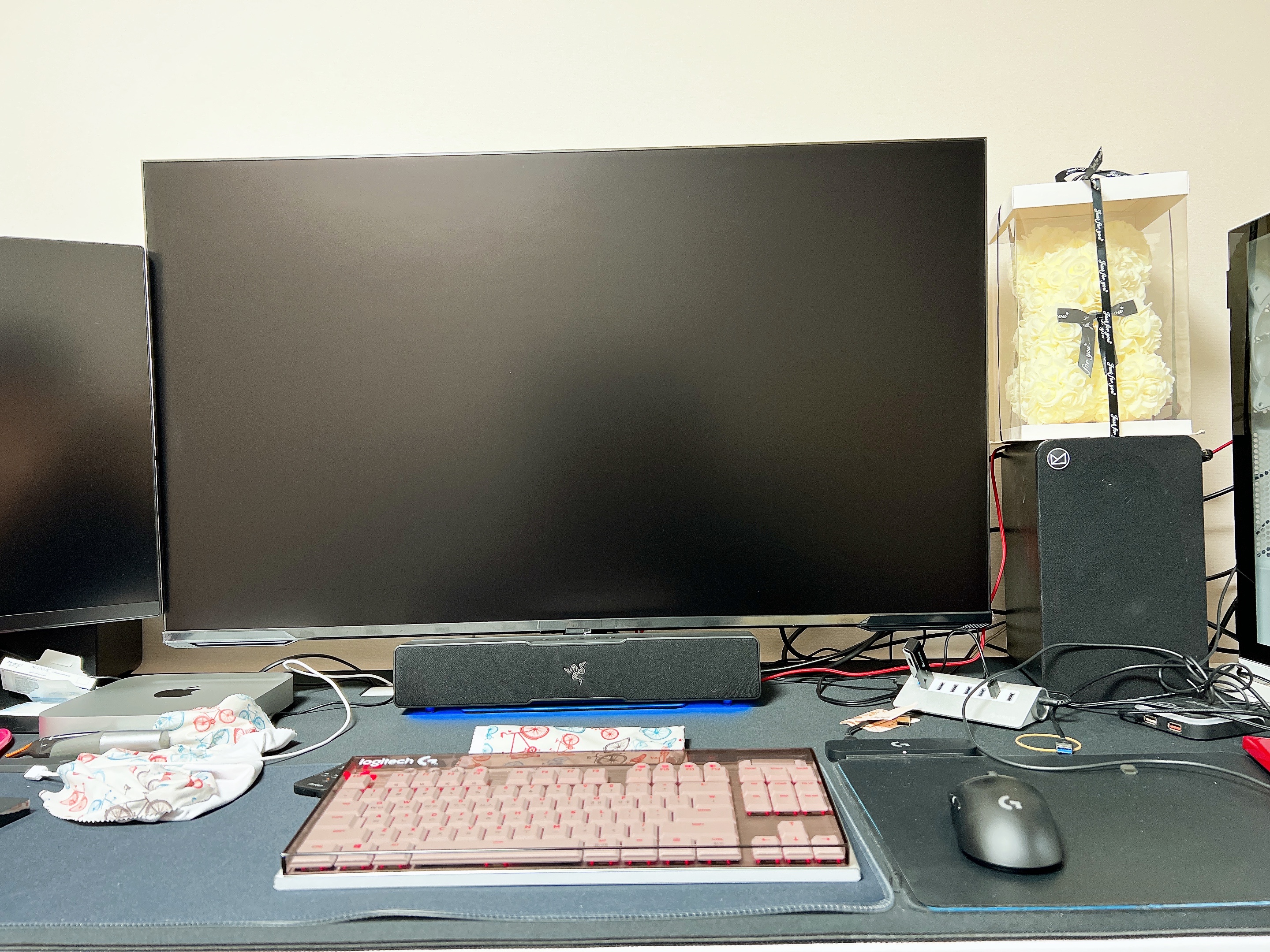 이번에 구매한 레이저 레비아탄 V2X 스피커 랑 같이 찍었습니다 .