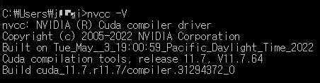 cuda 설치했을경우 설치가 되었는지 확인 하는 작업이 필요합니다. cmd 창을 열고 입력하세요. ( 가상환경 X )