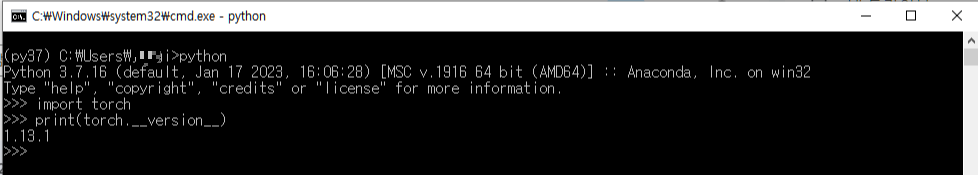 pytorch 버전 확인을 위해 cmd 에서 가상환경 activate 한 후에 아래와 같이 입력 하면 됩니다.