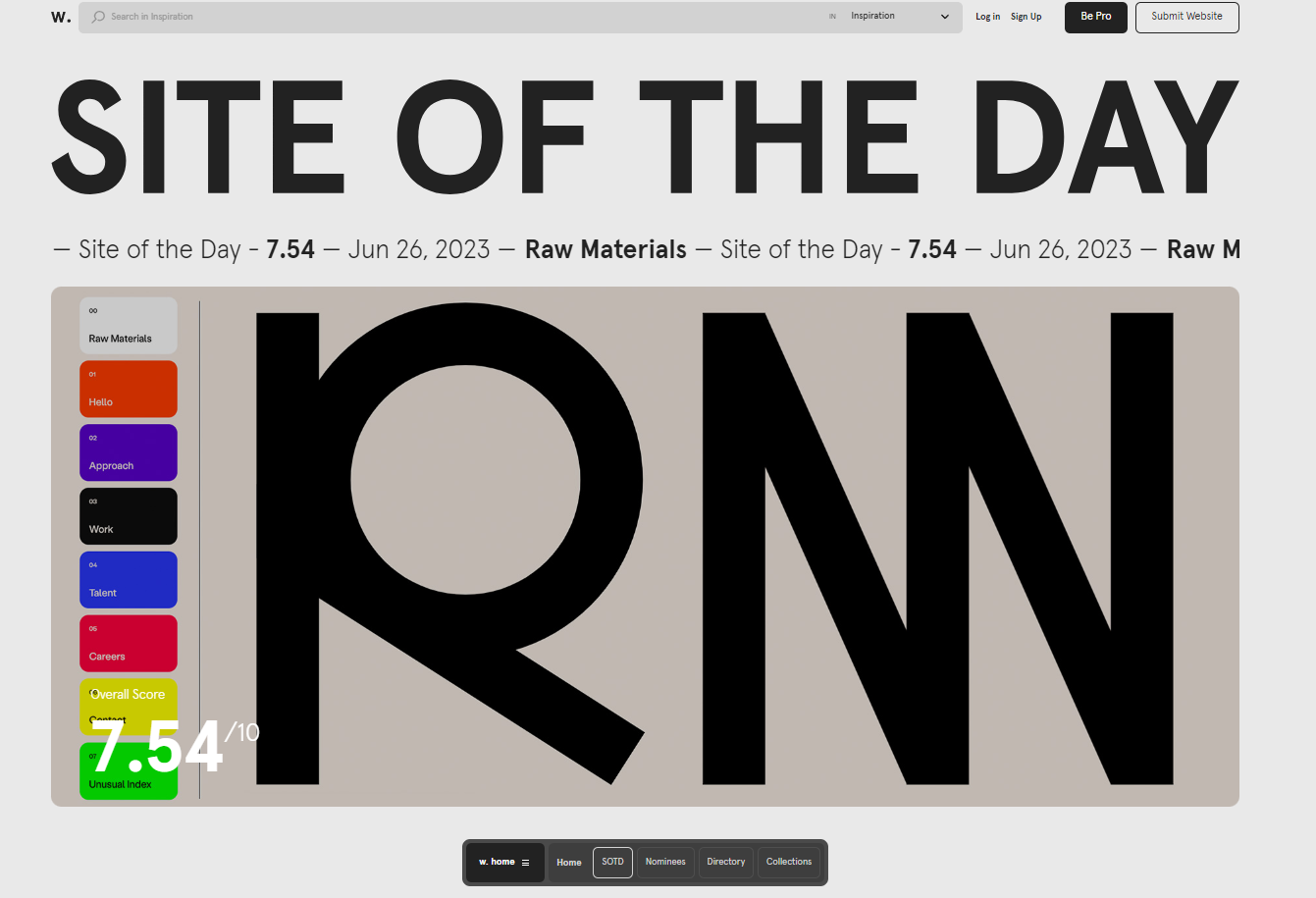 크리에이티브 전문가를 위한 리소스 역할을 합니다. 이 웹사이트는 온라인 및 인터랙션 디자인의 최신 트렌드와 방법을 보여주는 여러 분야의 다양한 프로젝트를 선보입니다. Siteinspire는 최신 디자인 트렌드와 접근 방식에 대한 최신 정보를 얻고 자신의 프로젝트에 대한 영감을 얻고자 하는 디자이너에게 큰 영감을 제공해줄 수 있습니다. 필자는 프로젝트 진행시