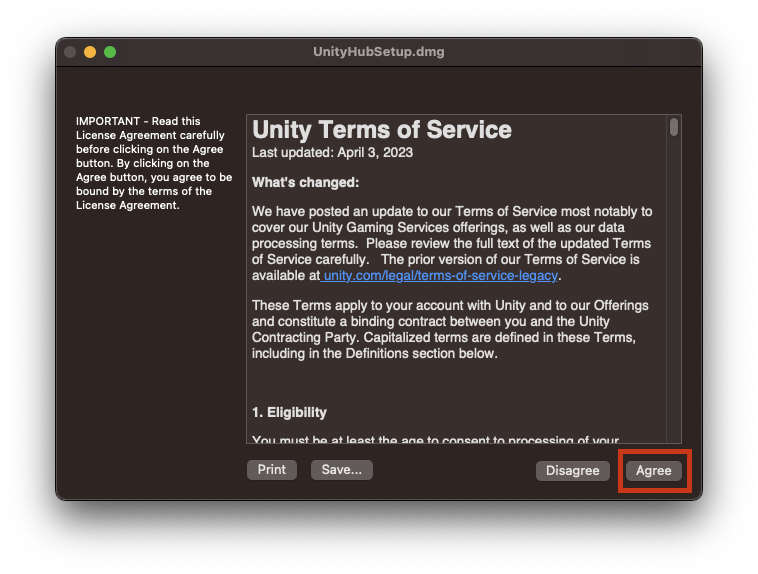 dmg파일을 실행하면 다음과 같은 화면이 뜹니다. Agree 눌러줍니다.
