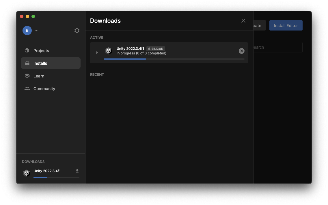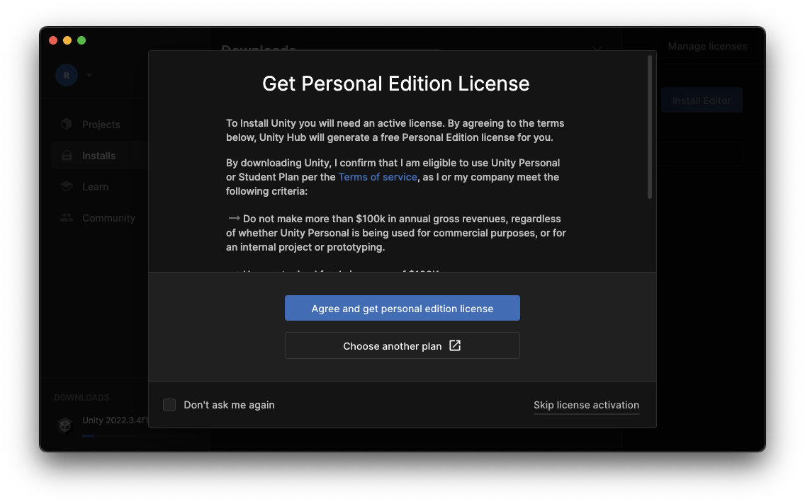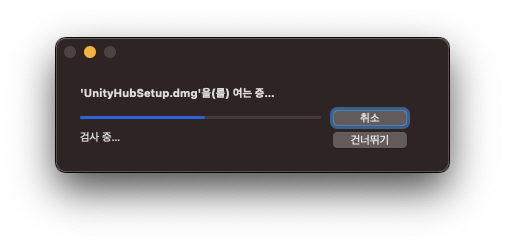 - Unity Hub 다운로드에서 Mac용 다운로드 클릭