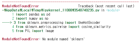 에러명 : ModuleNotFoundError: No module named 'sklearn'