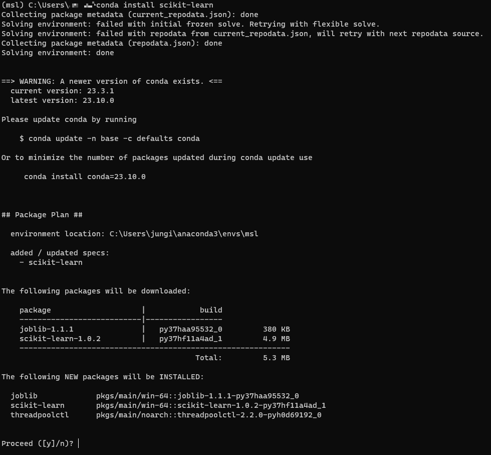 이번에 새로운 프로젝트 를 진행하면서 새로운 conda 환경을 설정했더니