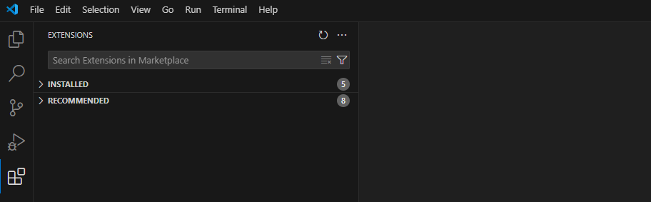 VSC 는 무료 개발툴 이기 때문에, 원하는 개발환경을 세팅하기 위해서는 Extension 이라는 탭에서 확장팩 을 설치해줘야 합니다. 바로 세팅해보도록 하겠습니다.