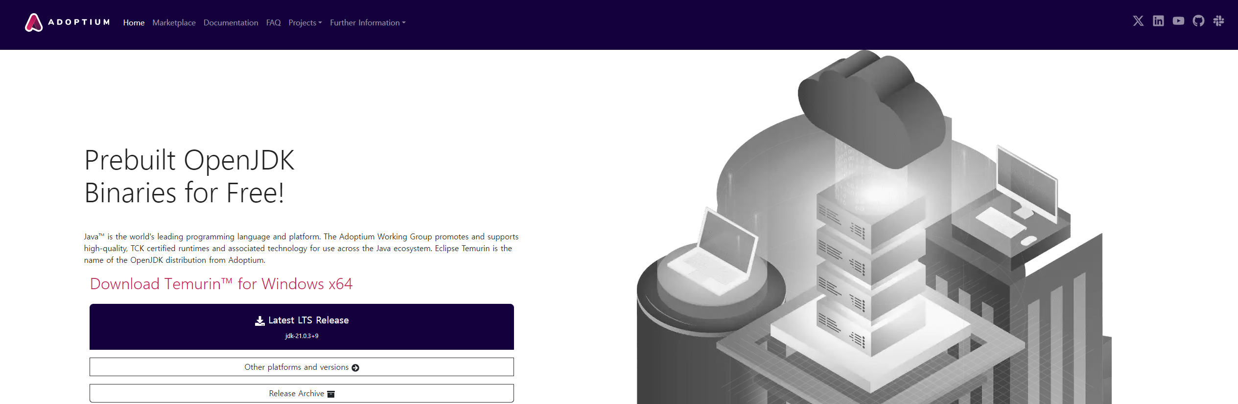AdoptOpenJDK (https://adoptopenjdk.net/) 웹사이트로 이동하여 운영체제에 맞는 JDK를 다운로드합니다.