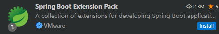 검색 창에 ' Spring Boot Extension Pack' 을 입력하고, VMWare 에서 제공하는 Spring Boot Extension Pack을 설치합니다.